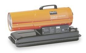 Dayton E49 Oil-Fired Forced Air Heater features 65,000BtuH of heating capacity, covers up to 1500 square foot, runs on Kerosene or number 1 fuel gas. The E49 runs on 5 gallson propane cylinder, with fuel rate is 0.50 gallon per hour, and 1 filling lasts up to 10 hours. This heater ideals for Construction Sites, Farms, Warehouses, Factories and other Outdoor Areas. Portable Oil Fired Heater, 65,000 BtuH, Tank Capacity 5.0 Gallons, One Filling 10 Hours, Fuel Consumption 0.50 Gallons, Motor Rating 1/8 HP, Current Rating 1.6 Amps, Length 30 Inches, Height 15 1/2 Inches, Width 11 3/4 Inches, Voltage @ 60 Hz 120, Kerosene or Number 1 Fuel Oil, With Carry Handle, Includes 6 Inch 120V Cord.